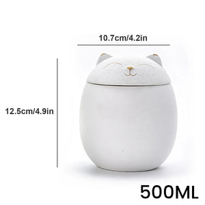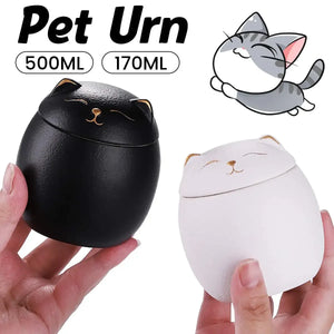 500ML BLACK/WHITE URN FOR PET ASHES - CAT SHAPE MEMORIAL CREMATION URNS - HANDCRAFTED DECORATIVE URNS FOR FUNERAL - CAT URN DOG URN
